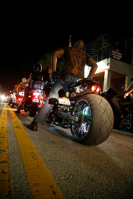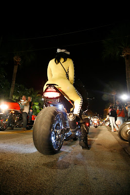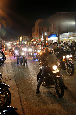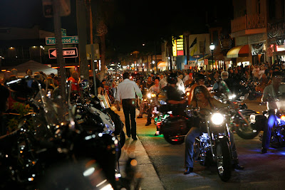 Daytona Beach är platsen för Biketoberfest som vi hamnade mitt i. När vi rullar in på Main Street på kvällen med full packning får vi många tummar upp och leenden när de som kantar gatan ser våra nummerplåtar från Kalifornien. Biketoberfest drar hundratusentals bikers till sig och Main Street är knökat med människor, motorcyklar, barer och liveband.